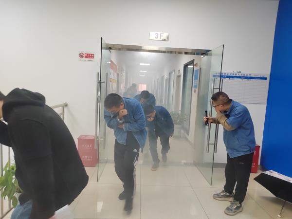 消防疏散演練模擬現(xiàn)場(chǎng)。警報(bào)聲響起,全體員工迅速行動(dòng),彎腰低頭、捂住口鼻,按預(yù)定路線有條不紊穿過(guò)“火災(zāi)煙霧現(xiàn)場(chǎng)”。整個(gè)過(guò)程中,員工嚴(yán)格遵守要求,冷靜應(yīng)對(duì),展現(xiàn)良好應(yīng)急反應(yīng)能力。