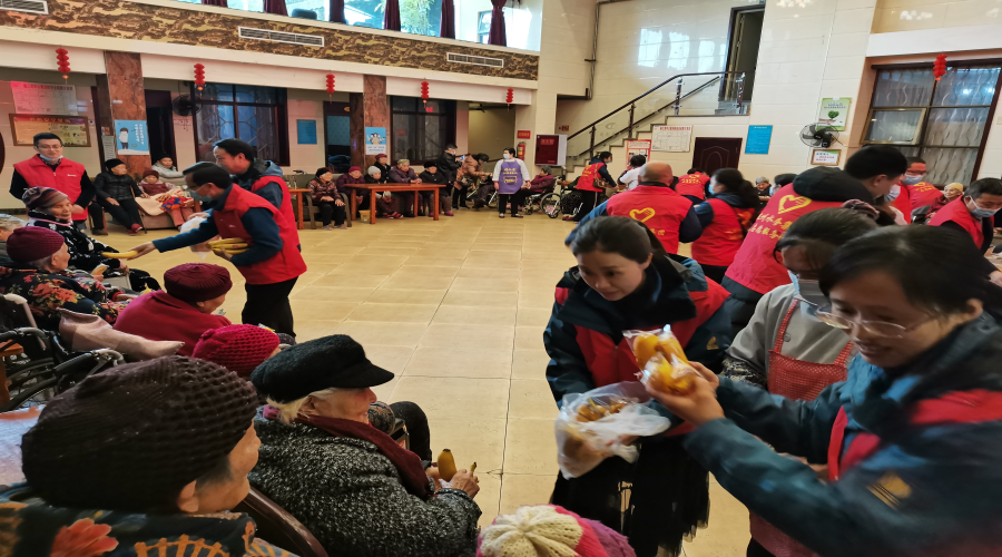 看,他們有的攙扶行動(dòng)不便的老年人散步、手拉手拉家常談愿望,有的為老人清掃公寓、喂吃食物等等,全部志愿者忙碌的身影讓全體老人感受到了家的溫馨,而現(xiàn)場(chǎng)其樂(lè)融融的景象顯得格外的和諧溫暖。